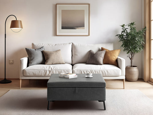 Grey Square Storage Ottoman - FINAL SALE ITEM