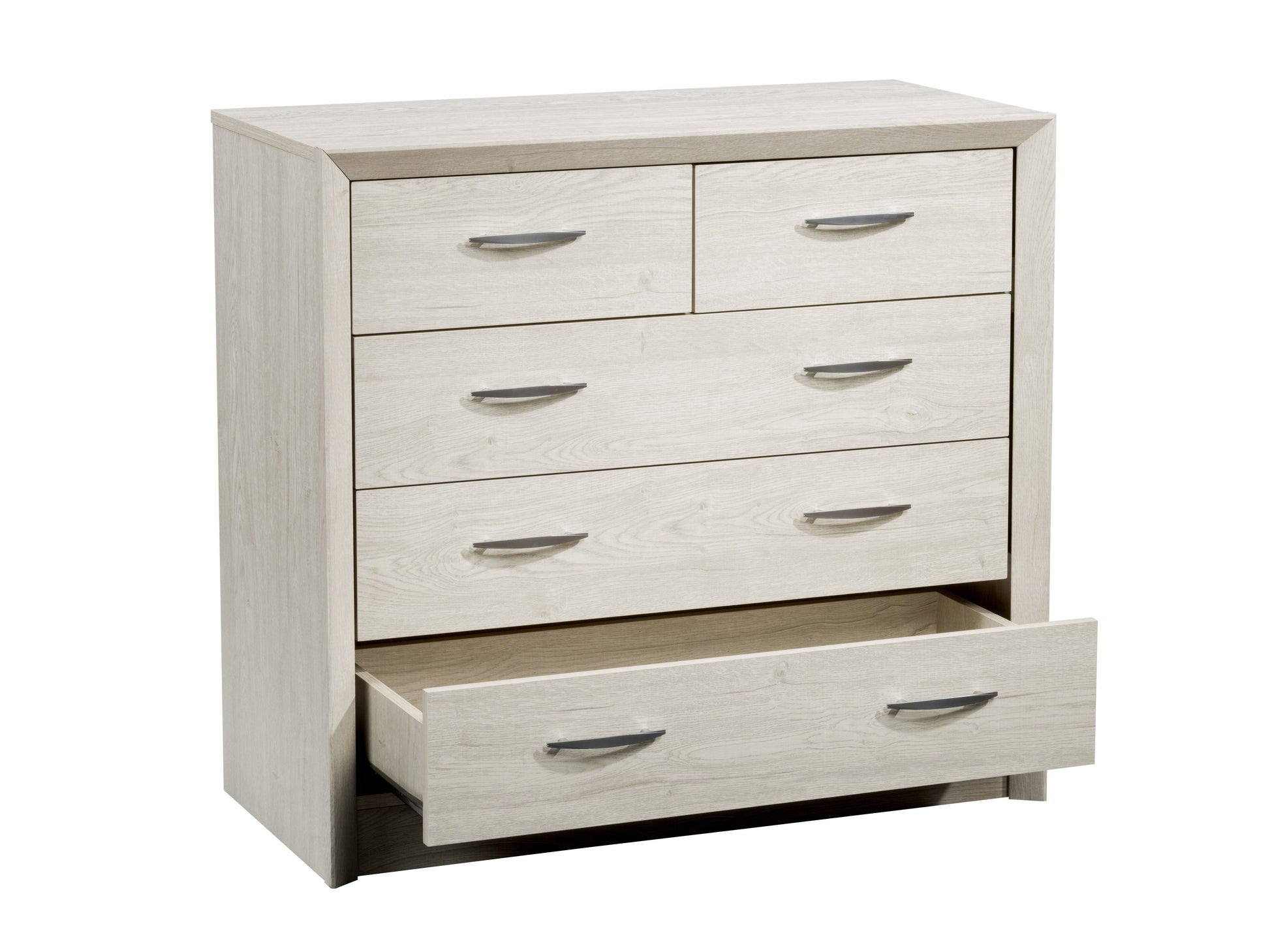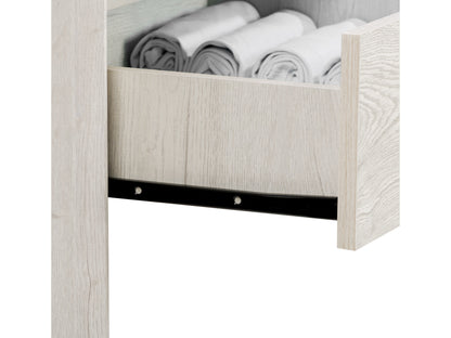 - Drawers slide smoothly on sturdy metal drawer glides for easy access