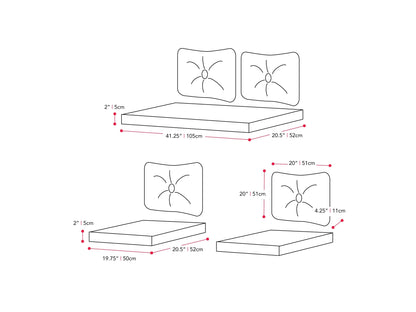 Comfortable replacement seat cushions are made from 2" foam wrapped in 1" soft batting and thick backrest cushioning. All cushions are covered with high‐grade polyester upholstery with piping. Add personality to any outdoor space with a complete set of cushions.Product Specifications