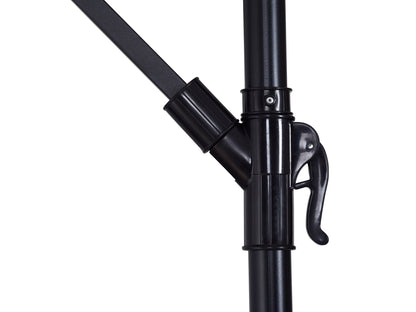 Make your backyard the place to be this summer with a new 9ft Tilting Cantilever Patio Umbrella. This umbrella is made of strong, durable, UV‐resistant polyester fabric and supported by a powder‐coated steel frame with six metal support arms. The tilting feature allows for optimal coverage, while the vented canopy provides added air circulation for better stability. In addition, a convenient crank system allows for easy use and storage. The sun is shining, and your patio is calling, what better way to enjoy the summer than with this beautiful patio umbrella?Product Specifications