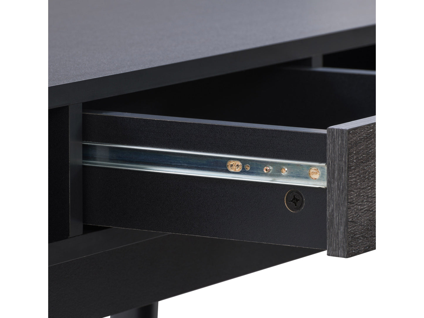Update your office or living space with a modern‐style compact writing desk. Crafted from solid and manufactured wood, in a two‐tone finish, it features splayed wood legs with an accent drawer with wood grain finish. Clean lines and a neutral finish makes it a great piece for offices, living rooms, entryway or even a fresh update as a vanity table. The accent drawer is perfect for stowing away pens, pencils, notepads, and anything else you need to tackle your to‐do list. The sleek mid‐century design is a stylish addition to any homeProduct Specifications
