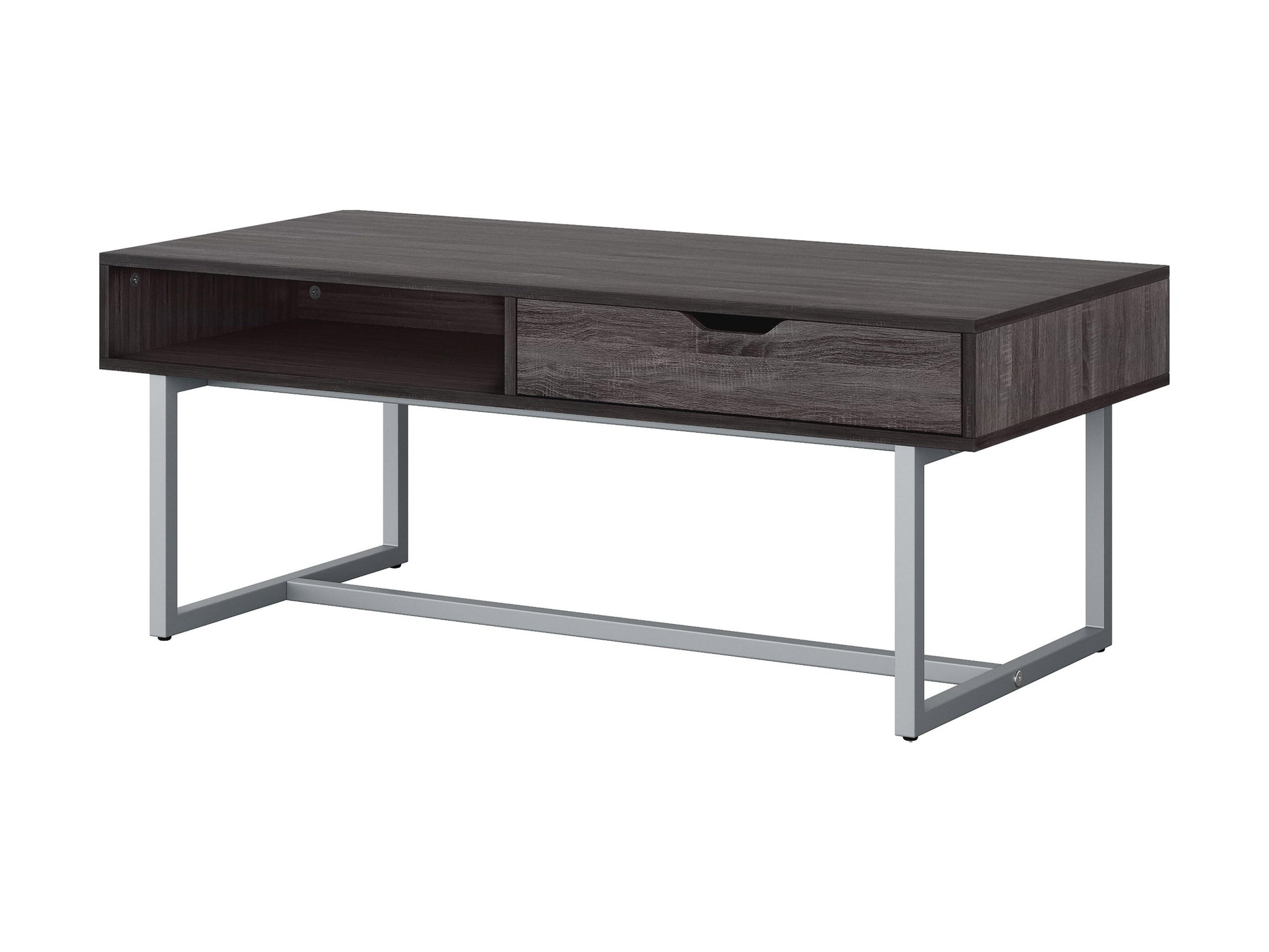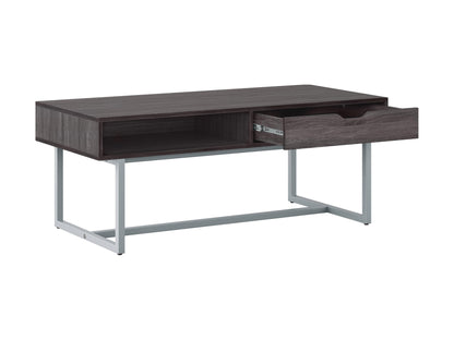Center your living room or den around the Auston single drawer coffee table. The perfect pick for modern classic aesthetics, it showcases a streamlined frame supported by sleek silver metal legs. With open and closed storage options it's perfect for stowing away remotes, iPad, chargers, and magazines, letting you keep living room clutter in easy reach, but out of sight.Product Specifications