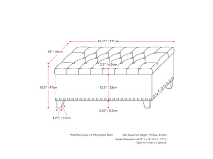 Within its refined silhouette lies a thoughtfully engineered storage compartment, offering abundant space for preserving seasonal items or cherished possessions. The smooth‐operating hinges and robust construction reflect an unwavering commitment to quality, while the generous interior dimensions provide practical storage without compromising the bench's elegant proportions. Each element has been carefully considered to ensure both beauty and functionality.