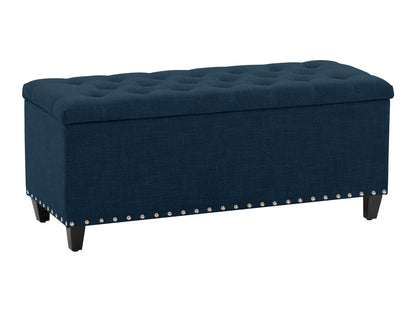 Discover this meticulously detailed storage bench's perfect marriage of classic design and modern functionality. The deep diamond tufting, a hallmark of traditional furniture craftsmanship, creates an elegant visual rhythm across the generously padded seat. This timeless detail is complemented by precisely placed nailhead trim, adding a sophisticated border that speaks to the bench's exceptional quality.