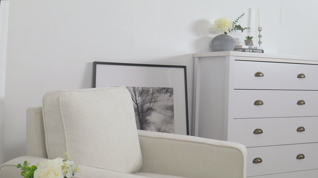 Built to impress and endure, this dresser features five spacious drawers that glide smoothly on sturdy metal tracks. Each drawer is adorned with gunmetal cup pull handles for a subtle industrial touch. Whether you're organizing your wardrobe or tucking away essentials, this dresser brings both beauty and convenience to your space.