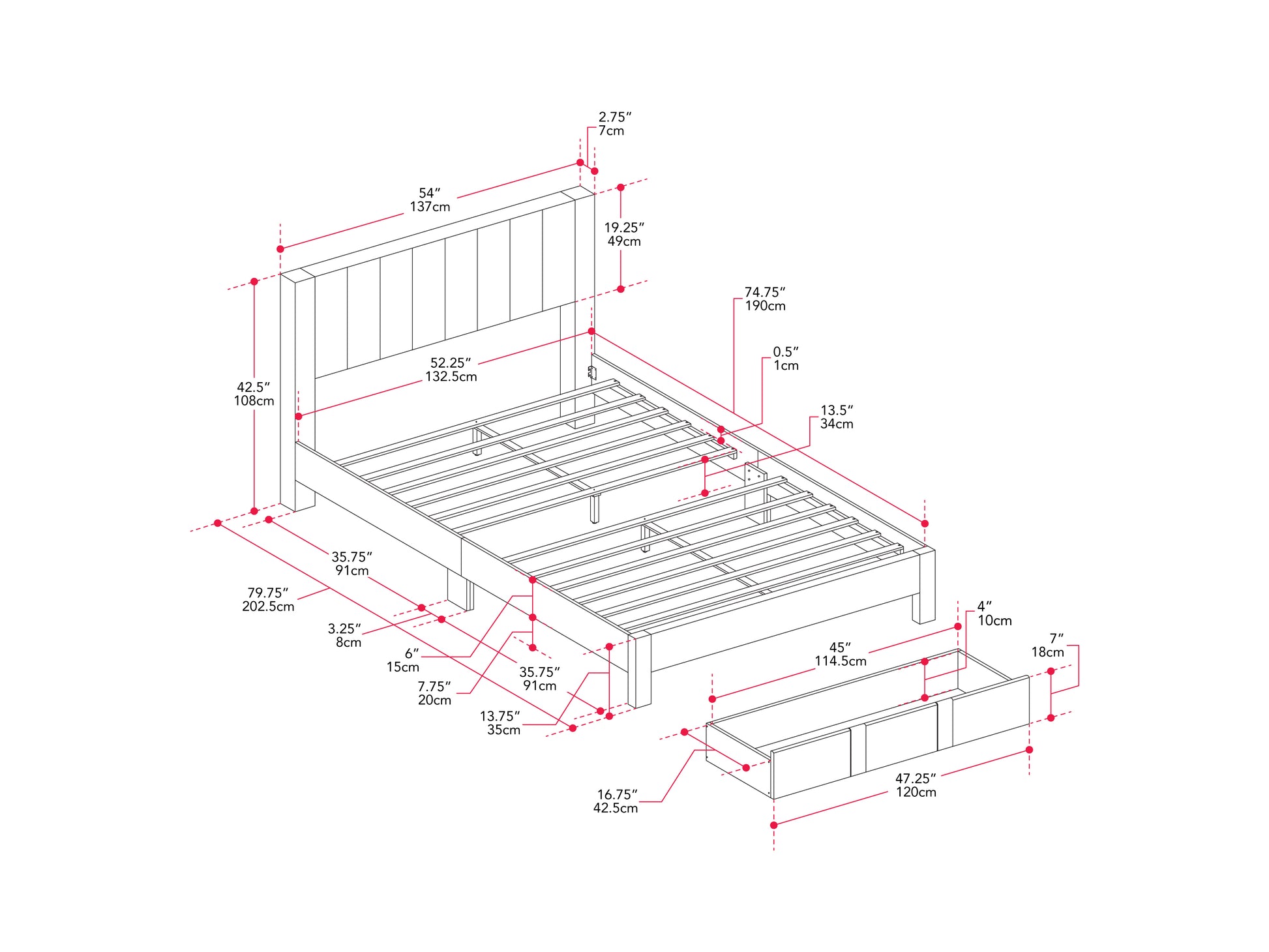 - Clever Storage: Expansive pull‐out drawer offers 3.5 cubic feet of concealed storage space, perfect for seasonal items and bedding.