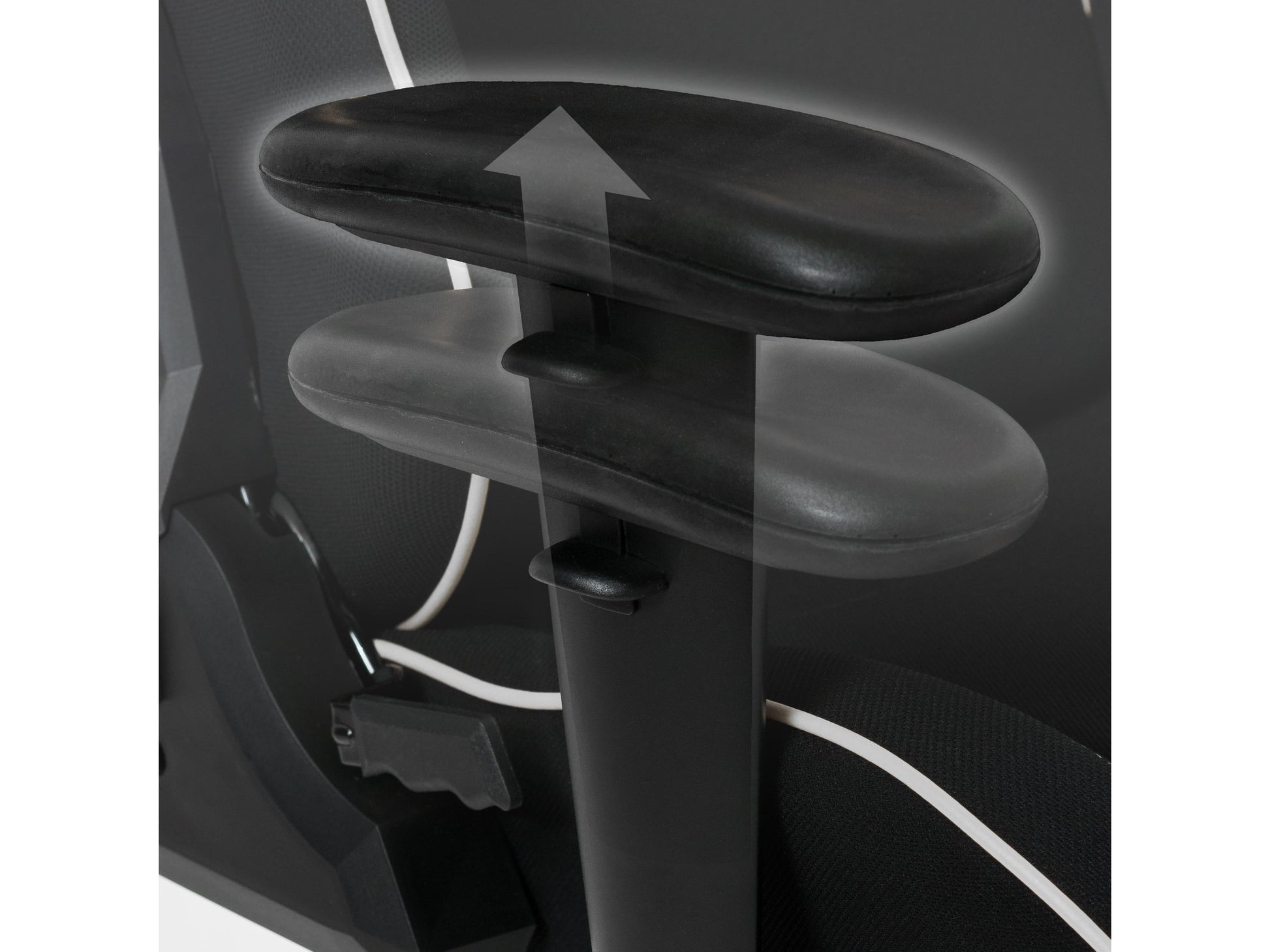 Discover how this ergonomic gaming chair, which combines maximum comfort and sleek racing design, can change the way you work and play. The tilting backrest, height adjustable gas lift, and supportive cushions promote a healthy posture. The height‐adjustable armrests allow you to tuck them under your desk, bringing your wrist closer to your mouse and keyboard which eases wrist strain. Inspired by high‐performance racing seats, the sporty design lets you perform at your peak by reducing back, neck, and wrist strain, making this gaming chair ideal for long gaming sessions.Product Specifications