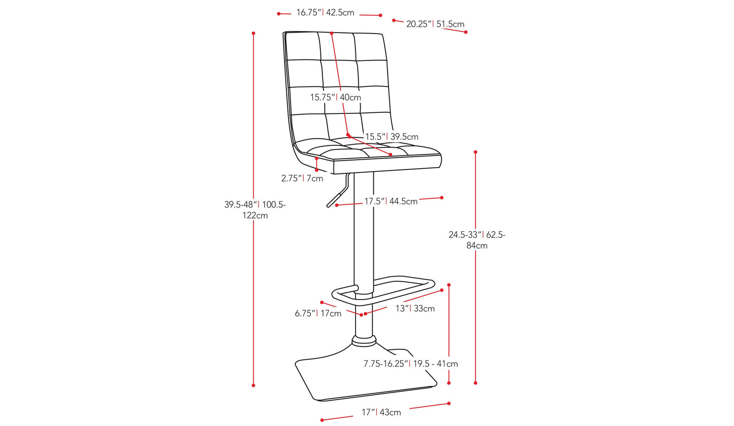 Elevate your kitchen with this pair of adjustable counter height bar stools. The unique square panel design, high backrest and metal base give it a modern yet approachable look that complements any decor. The swivel seat is generously padded for comfort, making dinners with friends and family even more enjoyable.Product Specifications