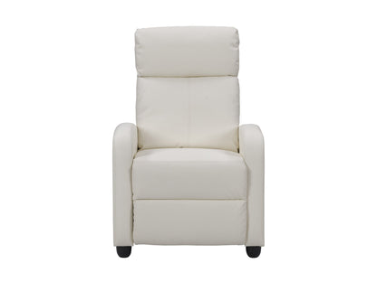 Sit back and relax in this manual push‐back recliner chair. Featuring a dual‐function foot extension and a reclining back that will surely help you unwind and de‐stress. This recliner chair is generously foam padded and upholstered in a durable PU fabric, perfect for high‐traffic rooms. The clean lines make the Oren recliner a sleek and stylish option for your space without sacrificing your comfort.Product Specifications