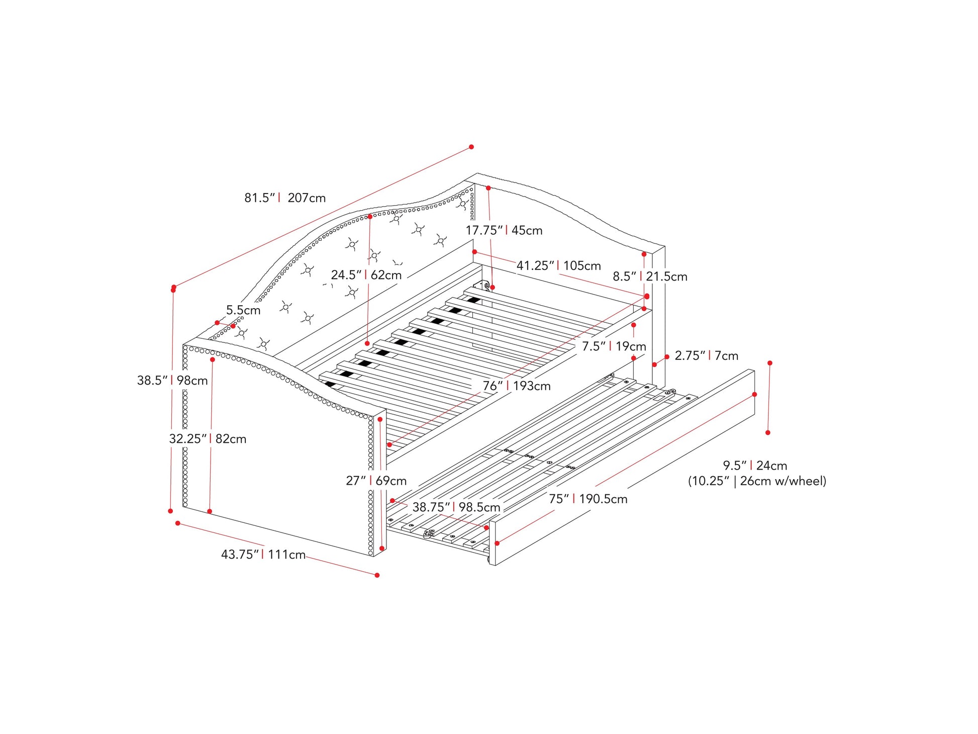• Space‐Saving: Hidden trundle transforms seating into double sleeping space instantly.