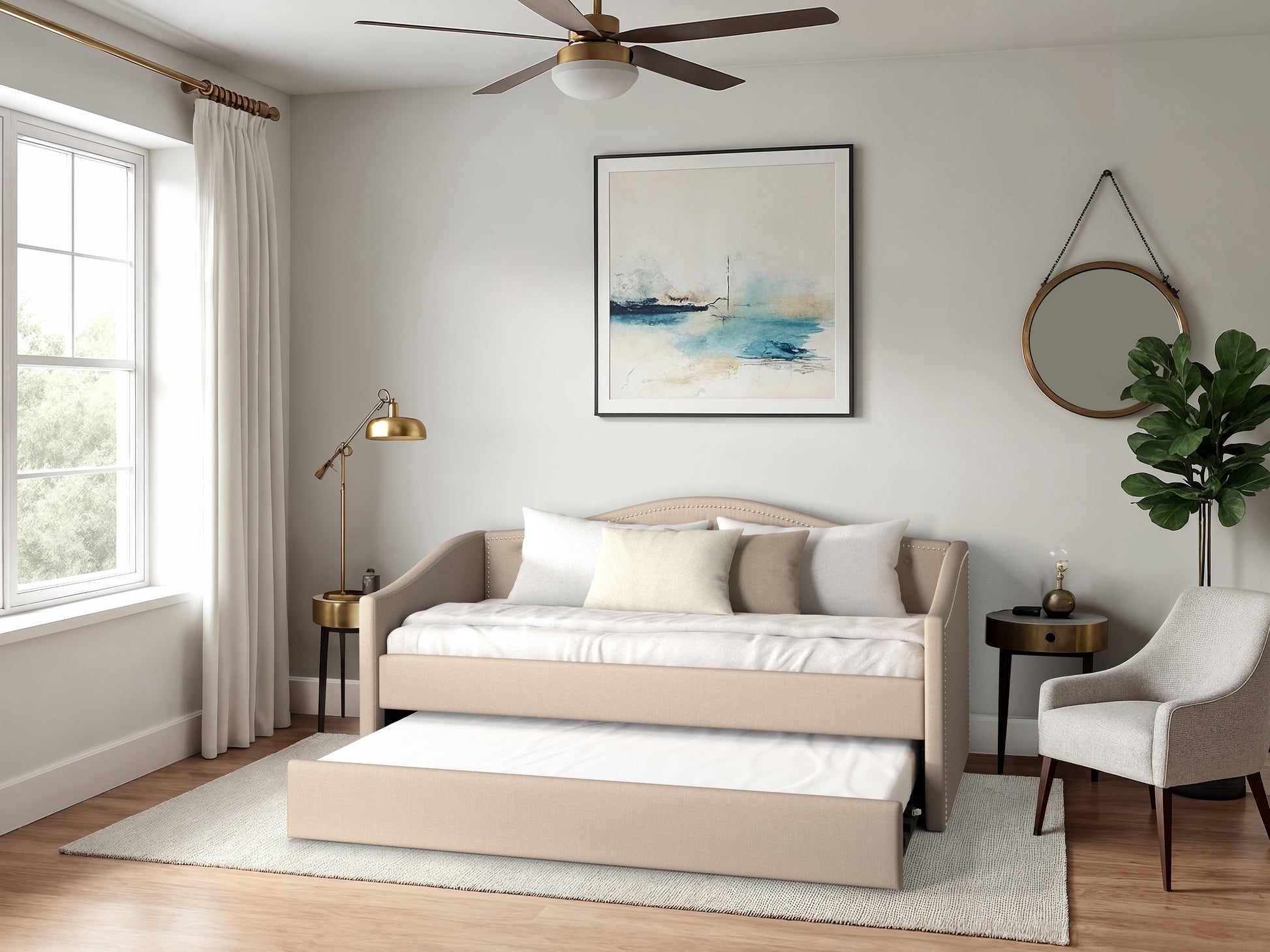Indulge in the perfect balance of modern aesthetics and everyday functionality. The sleek silhouette and button-tufted backrest create a sophisticated ambiance, while the hidden trundle caters to your practical needs. This versatile piece effortlessly transitions from a stylish daybed to a fully functional sleeping area, adapting to your fast-paced lifestyle and ever-changing requirements.