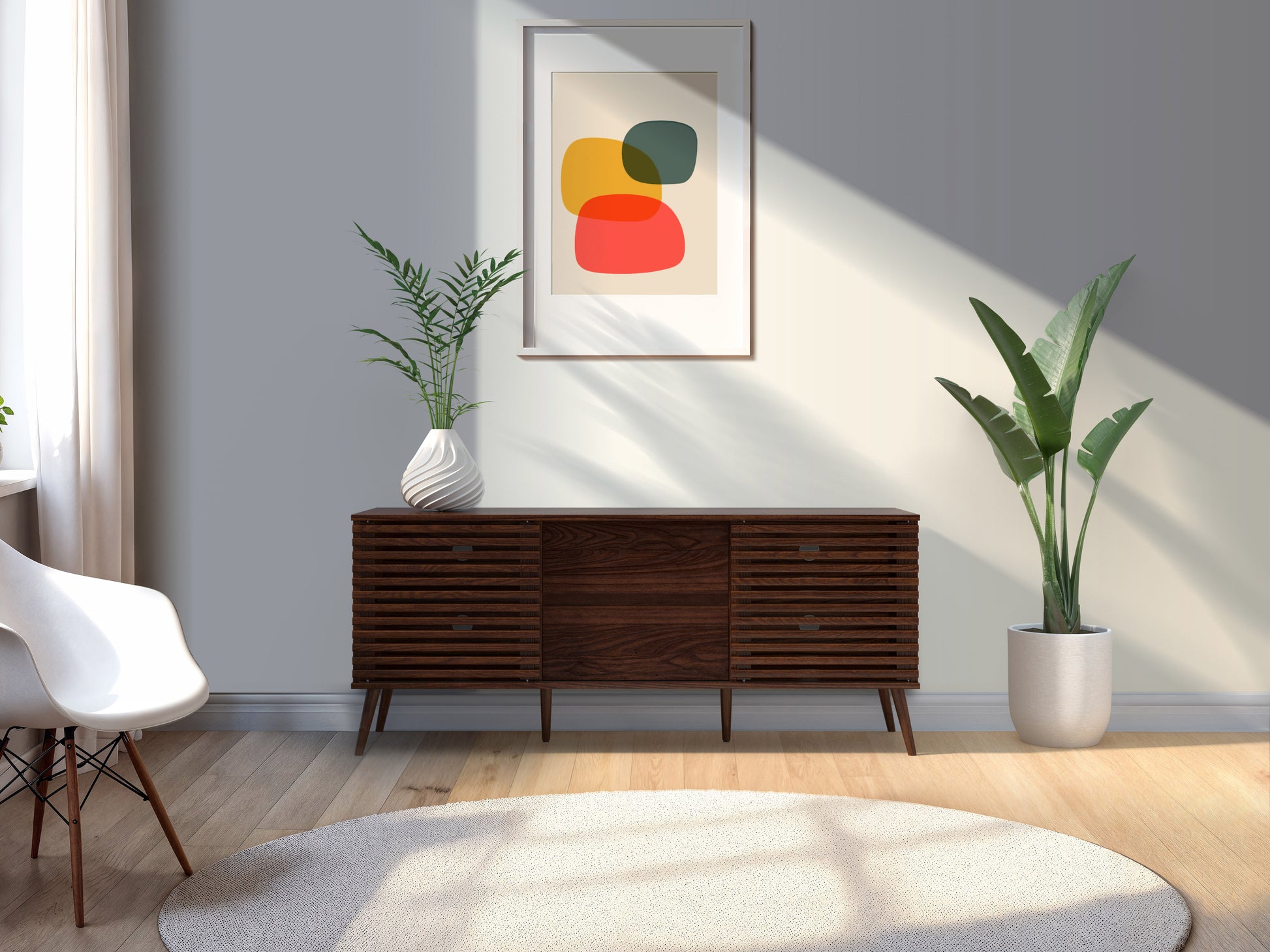 Step into a world of timeless sophistication with the Eames Walnut TV Stand. This exquisite piece seamlessly marries form and function, bringing mid‐century allure to your contemporary lifestyle. As you run your fingers along the rich walnut finish, you'll feel the quality craftsmanship that sets this sideboard apart.